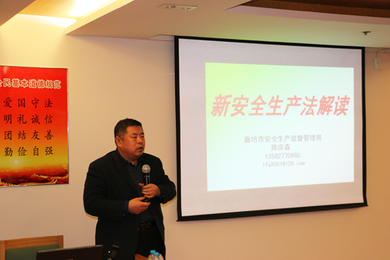 1月6日下午,中太建設集團新《安全生產法》宣貫會在中太大廈17樓舉行,邀請廊坊市安全協會秘書長陳慶森老師現場授課,集團公司董事長燕振義、執行總裁張明禮及其他在家高管出席會議,副總裁同歲虎主持會議。陳慶森老師以大量鮮活案例為切入點,結合新《安全生產法》的具體內容,對比新舊兩版《安全生產法》的相同之處和不同之處,深刻剖析《安全生產法》改版的意義。陳慶森老師指出,要讓安全生產的理念回歸教育本質,從娃娃抓起,從身邊百姓抓起,讓每個人提高安全意識,規范生產生活中的各種行為,才能使得安全生產現狀得到有效改善,才能保障社會生產生活的有序進行。