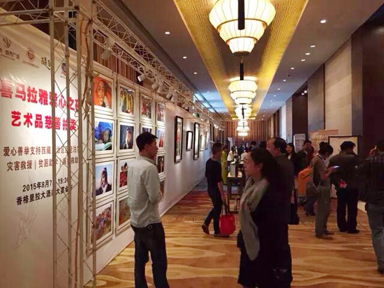 當天晚上8點,來自當?shù)卣块T、行業(yè)組織、企業(yè)代表、媒體單位和其他社會各界愛心人士近500人齊聚一堂,現(xiàn)場座無虛席。在一段震撼人心的“尼泊爾地震”視頻后,活動正式拉開序幕。拍賣從當?shù)財z影家的兩幅作品開始,隨后的藏香、藏式珠寶、唐卡、油畫等拍品讓現(xiàn)場的氣氛持續(xù)升溫,現(xiàn)場嘉賓被精彩紛呈的藝術(shù)品吸引,更為藝術(shù)家和收藏家們的慷慨捐贈所感染,紛紛舉手競拍,爭相獻出自己的愛心。在不到一個半小時的時間里,所有近20件拍品全部成交,共募集善款282800元。