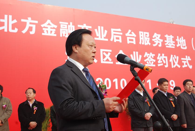 11月19日,經(jīng)河北省人民政府批準(zhǔn),河北省“中國(guó)北方金融產(chǎn)業(yè)后臺(tái)服務(wù)基地(A區(qū))”在中太現(xiàn)代服務(wù)業(yè)基地正式掛牌。省長(zhǎng)助理、省金融辦主任江波、廊坊市市委書記趙世洪出席揭牌及入?yún)^(qū)項(xiàng)目簽約儀式并為基地揭牌。市長(zhǎng)王愛民講話。市政府常務(wù)副市長(zhǎng)吳立方、市委常委、組織部長(zhǎng)范永錄等省市縣相關(guān)部門領(lǐng)導(dǎo)出席儀式。揭牌儀式由永清縣委書記布澤文主持。