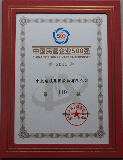 中太建設(shè)集團排名2011中國民營企業(yè)500強第119位
