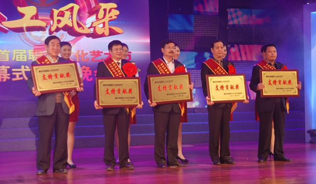 10月26日晚,廊坊市總工會在廊坊管道局影劇院隆重舉辦“職工風(fēng)采”廊坊市首屆職工文化藝術(shù)節(jié)閉幕式頒獎晚會。市委副書記吳曉琳等市領(lǐng)導(dǎo)到場觀看演出,并為獲獎人員頒獎。中太建設(shè)集團等五家單位榮獲藝術(shù)節(jié)“支持貢獻獎”。受集團董事局主席、黨委書記李文健委托,工會主席、黨委副書記鐘崇鶴(中)代表集團上臺領(lǐng)獎。從5月到10月首屆職工文化藝術(shù)節(jié)期間,市總工會會同相關(guān)部門共組織了十大系列100項活動,其中組織各項比賽500余場次,2萬余名職工參加,取得了豐碩成果。 |