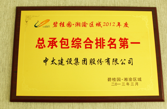| 集團公司獲“碧桂園•湘渝區(qū)域2012年度總承包綜合排名第一” |