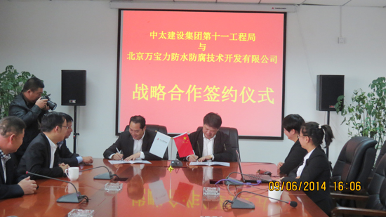 9月6日,中太建設集團第十一工程局與國內防水工程行業知名企業——北京萬寶力防水防腐技術開發有限公司簽署合作協議,確立了防水工程服務戰略合作伙伴關系。十一局局長馬功云、副局長陳可偉、吳夕強以及萬寶力公司董事長王力共同出席了此次簽約儀式。