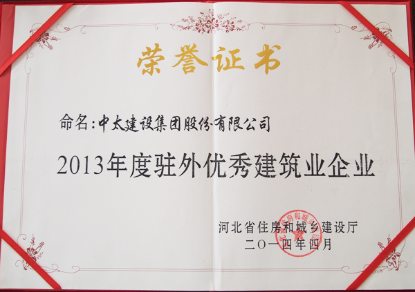 日前,由河北省住房和城鄉(xiāng)建設(shè)廳主辦的關(guān)于評選2013年度駐外優(yōu)秀建筑業(yè)企業(yè)和優(yōu)秀項(xiàng)目經(jīng)理的活動結(jié)果揭曉,中太建設(shè)集團(tuán)以突出的綜合實(shí)力和良好的社會口碑,被授予“2013年度駐滬優(yōu)秀建筑業(yè)企業(yè)”榮譽(yù)稱號,項(xiàng)目經(jīng)理石鋒德以優(yōu)異的工作成績和惟以求真的工作態(tài)度被光榮評選為“2013年度駐滬優(yōu)秀項(xiàng)目經(jīng)理。”