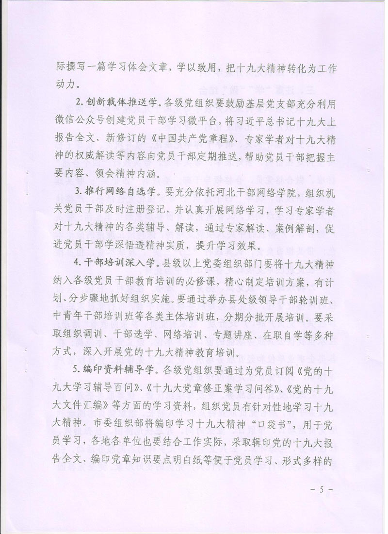 [2017]24號關于轉發《中共廊坊市委組織部<關于在推進“兩學一做”學習教育常態化制度化中深入開展學習貫徹黨的十九大精神的通知>》的通知